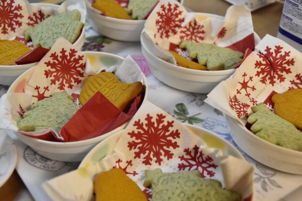 こそだてカフェでは、かぼちゃやほうれん草などの自然な素材を使ったソフトクッキーをご用意しました。